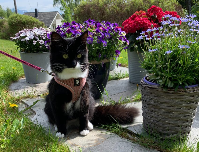 Det viktigste er vel allikevel at man ser sin egen katt an. Hvilke uteområder man har å tilby katten spiller selvfølgelig også inn. Bella er nærmer seg nå ni måneder, og hun er veldig interessert i å få komme ut. Hun har allerede vært noen turer sammen med meg i bånd i hagen, og det synes hun er veldig spennende. Der er det bare sååå mange spennende lukter og inntrykk i tillegg til fugler og insekter. Etter en prat med veterinæren, mente hun at vi nå kan begynne å venne Bella til å være ute litt etter litt.